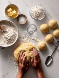 • Butter: Adds richness, makes the dough tender.