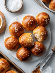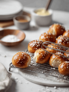 These soft, chewy pretzel bites are made by boiling small dough balls in baking soda water before baking, resulting in a crispy, flavorful crust. The dough is simple, with yeast, flour, and butter, creating a tender interior and a salty, golden exterior. They’re perfect for snacking, with a chaotic, playful look and irresistible texture.