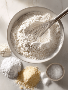 Step 2: Mix the dry ingredients: flour, sugar, baking powder, and a pinch of salt.