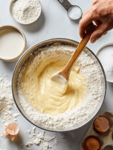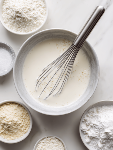 Step 3: Combine wet ingredients: milk, eggs, and a dash of vanilla until smooth.