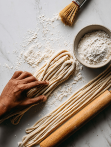 - Sharp knife or dough cutter: To cut and shape the dough into ropes and webs.