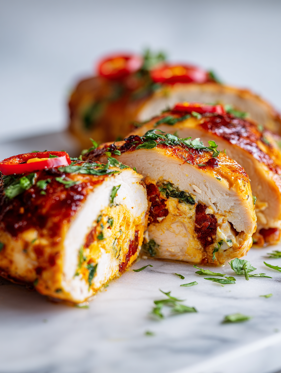 • Rest time: Let the stuffed chicken rest for at least 5 minutes before slicing—this keeps juices locked in.