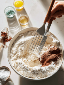 - Sift together the flour, cocoa powder, baking soda, and salt into a large mixing bowl. This ensures an even, lump-free dry mixture.