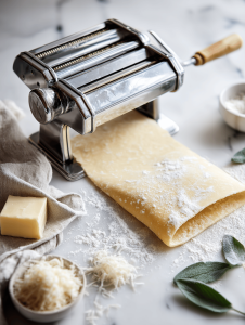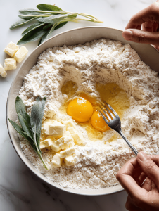 - Pasta dough: Simple flour, eggs, a pinch of salt—needs to be firm but flexible.