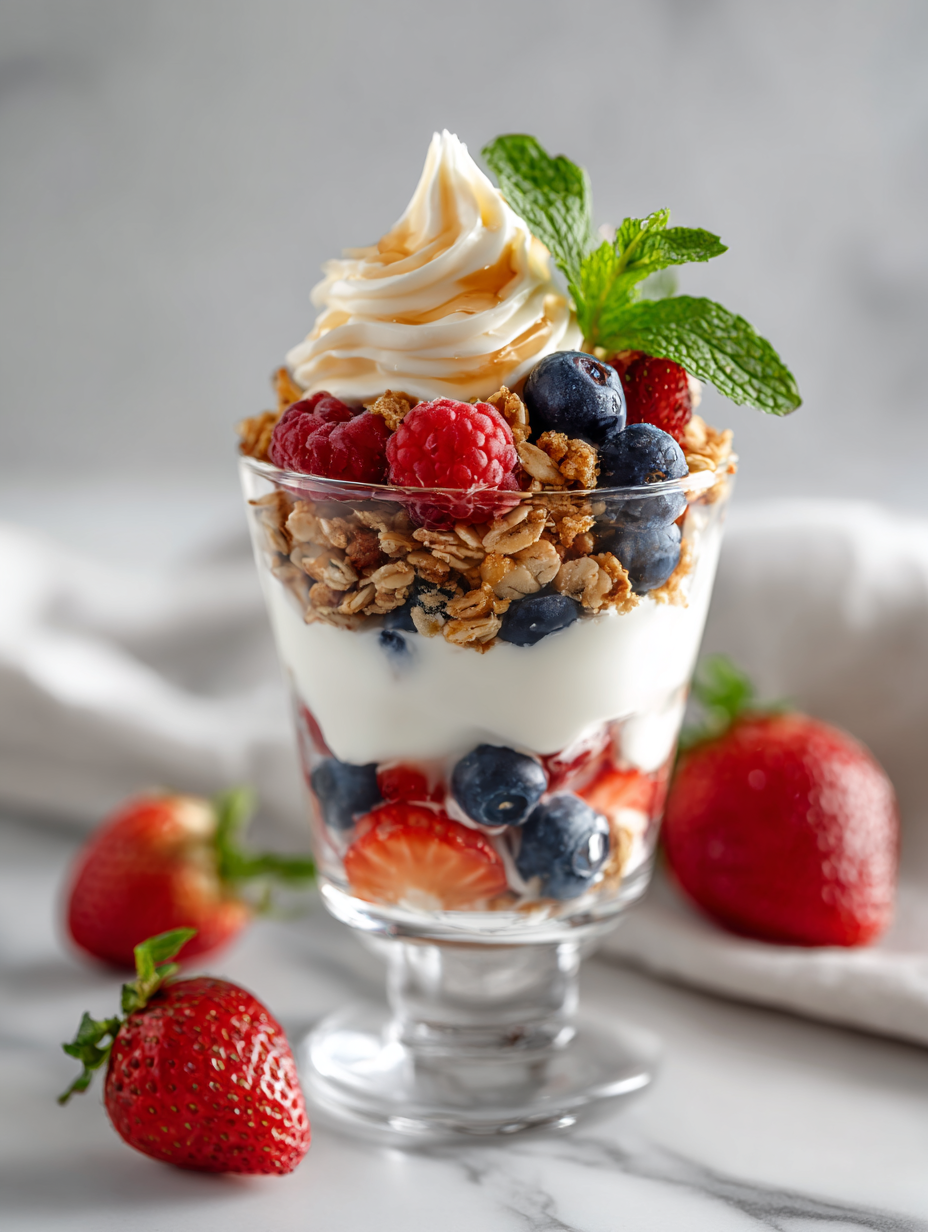 • Herbs: Fresh basil or lemon balm can substitute mint for a more citrusy, herbal aroma that brightens the parfait.