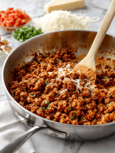 Step 4: Sauté ground beef or plant-based alternative with chili powder and cumin until browned and fragrant, about 10 minutes.
