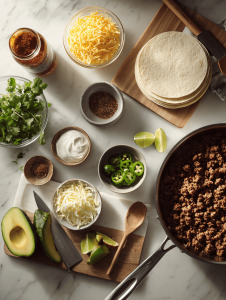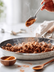 - Taco seasoning: A smoky blend of chili, cumin, garlic. Use store-bought or make your own for control.