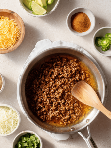Step 3: Cook the seasoned meat until it’s well-browned, about 8-10 minutes, stirring often.