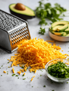 - Shred the cheese using a microplane or grater, and prepare your toppings: chop cilantro, slice avocados, and slice jalapeños if using.