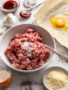 - In a large mixing bowl, combine the ground beef and pork, then add the breadcrumbs, chopped onion, minced garlic, Worcestershire sauce, eggs, and a pinch of salt and pepper.