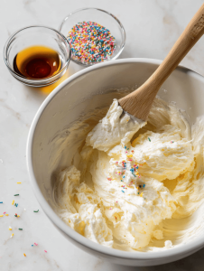 - Remove the pan from heat, then quickly fold in the vanilla extract and any optional extras like chocolate chips or sprinkles, mixing until evenly distributed.