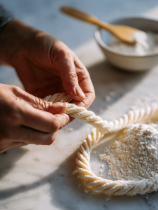 • Sharp knife or dough cutter: To cut and shape the dough into ropes and webs.