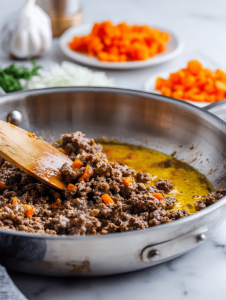 - Ground beef or lentils: I prefer the richness of beef, but lentils make it vegetarian—and still hearty.: Adds protein and body, with a savory depth that’s essential.