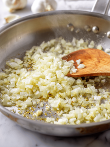 - Add the diced onion and minced garlic to the skillet, stirring until translucent and fragrant, about 3 minutes. The mixture should smell warm and inviting.