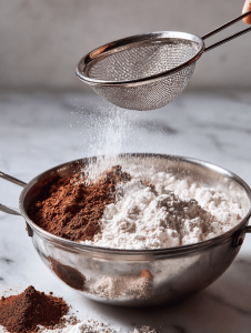 - Sift together the flour, cocoa powder, baking soda, and salt into a large mixing bowl. This ensures an even, lump-free dry mixture.