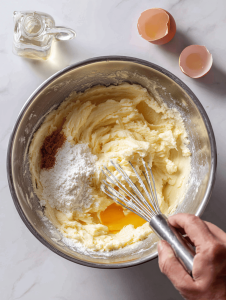 - Add the egg and vanilla extract, then beat again until well combined, about 1 minute. The mixture should be smooth and slightly glossy.